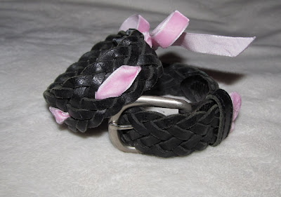 I was looking in my sons closet for some old shirts and  my eyes got really big when I found a Black Braided belt G had when he was about 8, it kind of made me  feel  a little emotional.:(   Well, I decided to create a couple of bracelets out of them.  Now It has sentimental value on top of Re-Style value.:)
